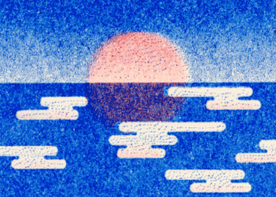 11” x 17”. Printed using Medium Blue & Flo Orange RISO ink on French Paper Insulation Pink text.